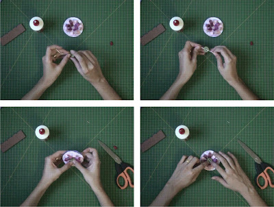 Passo 3. Passe um pouco de cola acid free e coloque um botão. Ele servirá para decorar e também para manter a flor colada.